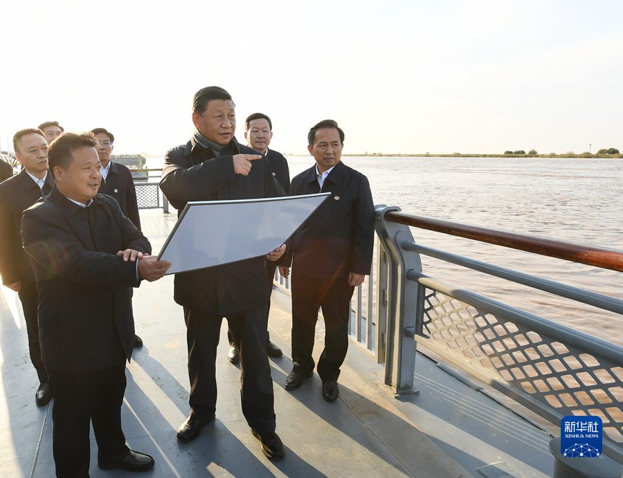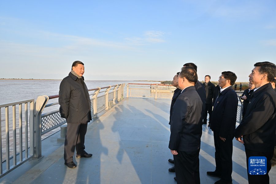 10月22日下午,中共中央總書(shū)記、國(guó)家主席、中央軍委主席習(xí)近平在山東省濟(jì)南市主持召開(kāi)深入推動(dòng)黃河流域生態(tài)保護(hù)和高質(zhì)量發(fā)展座談會(huì)并發(fā)表重要講話。這是座談會(huì)前,習(xí)近平20日下午在東營(yíng)市黃河入??诳疾?。 新華社記者 李學(xué)仁 攝