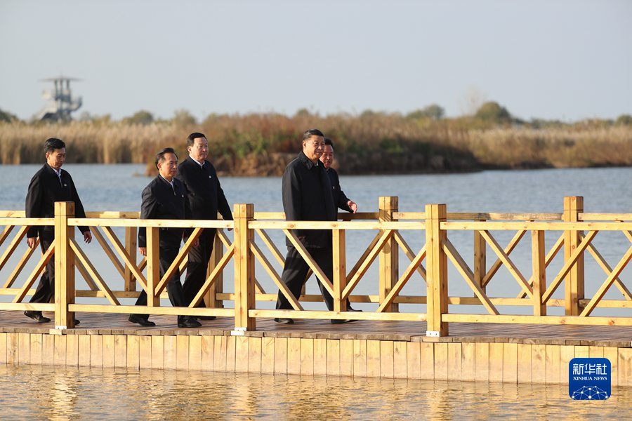 10月22日下午,中共中央總書(shū)記、國(guó)家主席、中央軍委主席習(xí)近平在山東省濟(jì)南市主持召開(kāi)深入推動(dòng)黃河流域生態(tài)保護(hù)和高質(zhì)量發(fā)展座談會(huì)并發(fā)表重要講話。這是座談會(huì)前,習(xí)近平20日下午在東營(yíng)市黃河三角洲國(guó)家級(jí)自然保護(hù)區(qū)察看黃河三角洲濕地生態(tài)環(huán)境。 新華社記者 王曄 攝