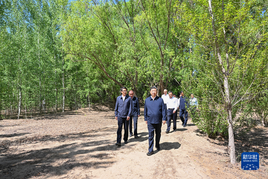 6月5日至6日,中共中央總書記、國家主席、中央軍委主席習近平在內(nèi)蒙古巴彥淖爾考察,并主持召開加強荒漠化綜合防治和推進“三北”等重點生態(tài)工程建設(shè)座談會。這是5日下午,習近平在烏梁素??疾?。新華社記者 燕雁 攝